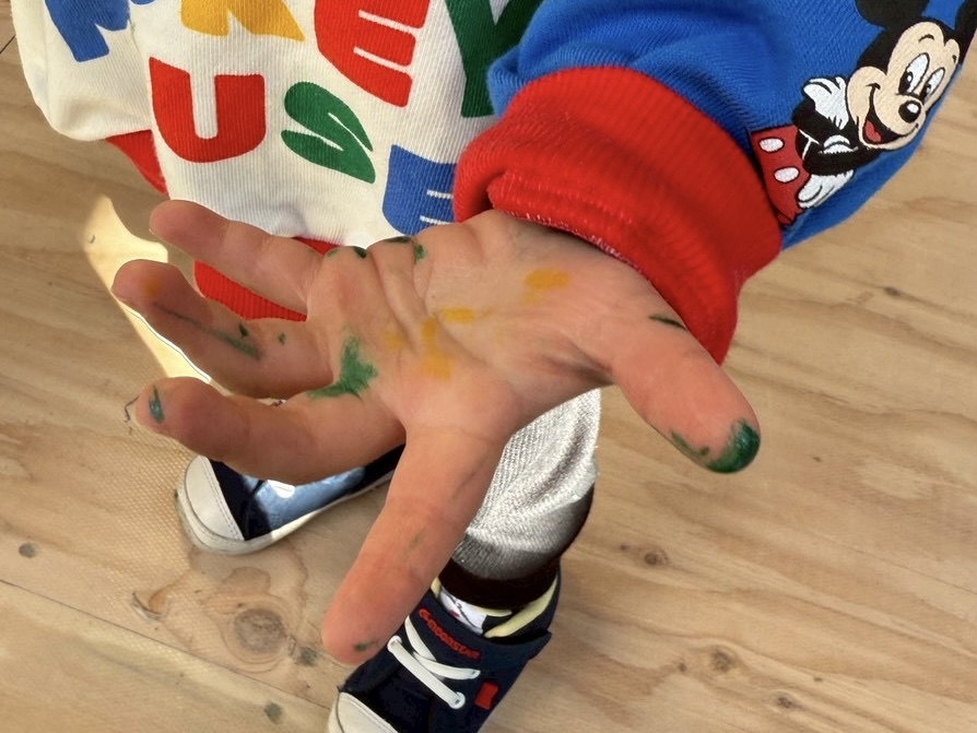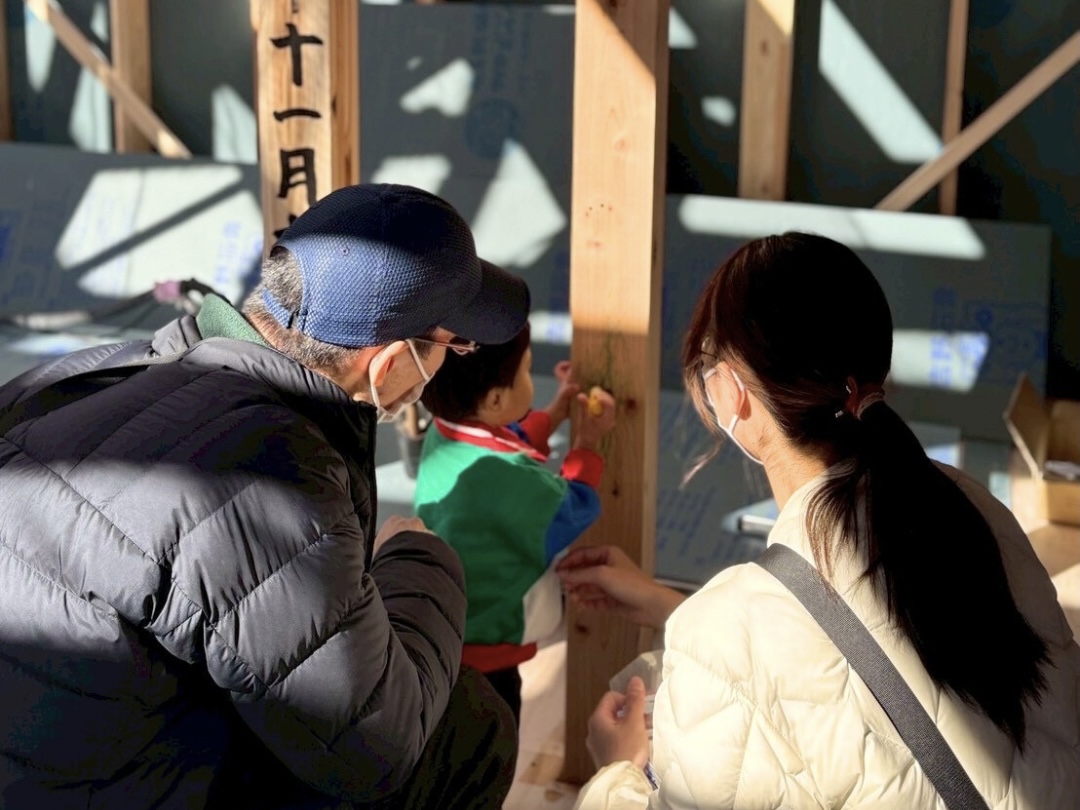 そんな穏やかな空気の中で、お子さまがとても楽しそうに手形を押す姿が印象的で、小さな手のひらに残った色が、家づくりの記念としてあたたかく刻まれた瞬間でした。