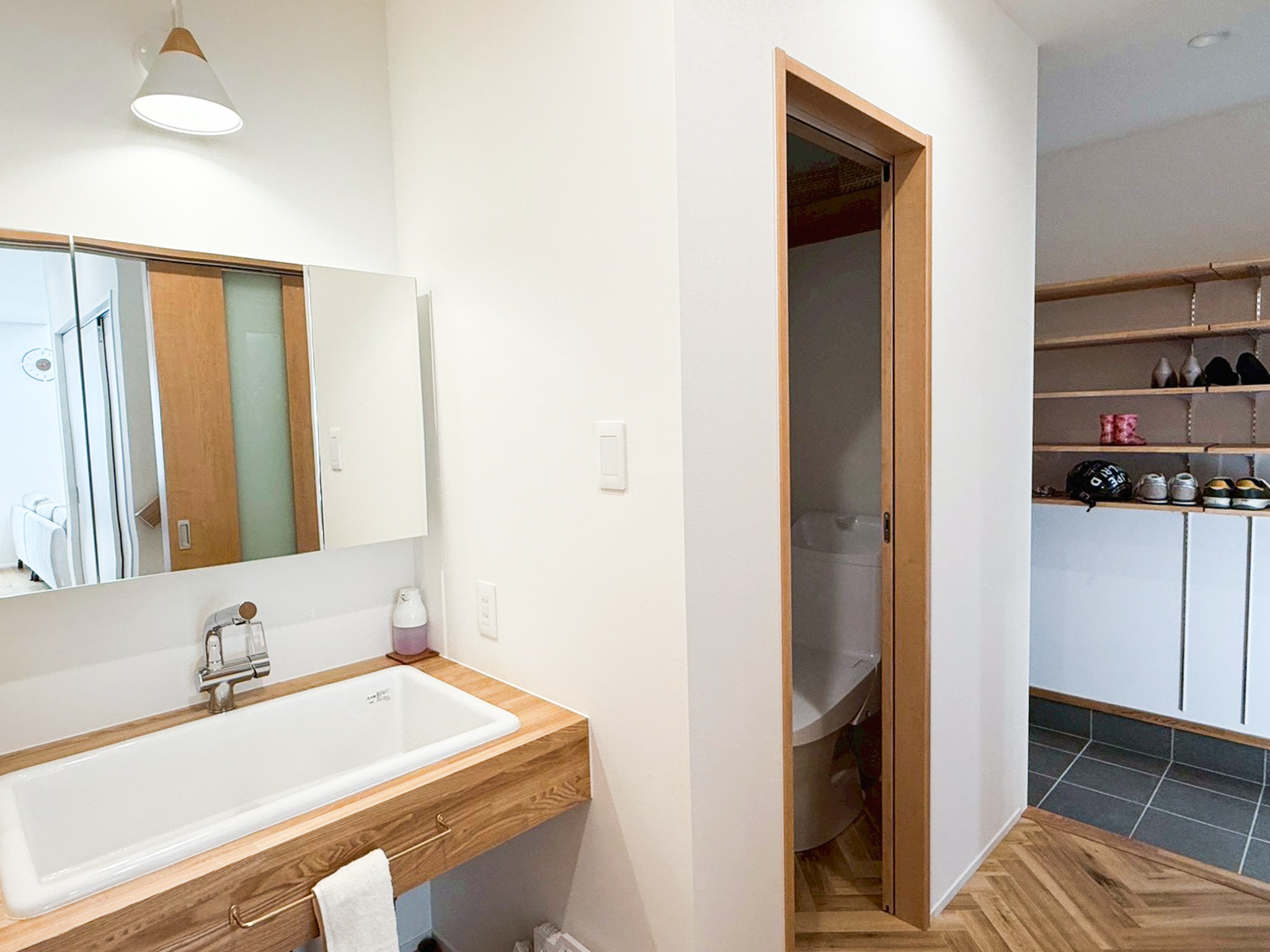 A様:そうです。玄関から2方向に行けるので、将来子どもが公園から帰ってきた時に、リビング通らずに流しに直行できる。そこも結構ありがたいなって思います。