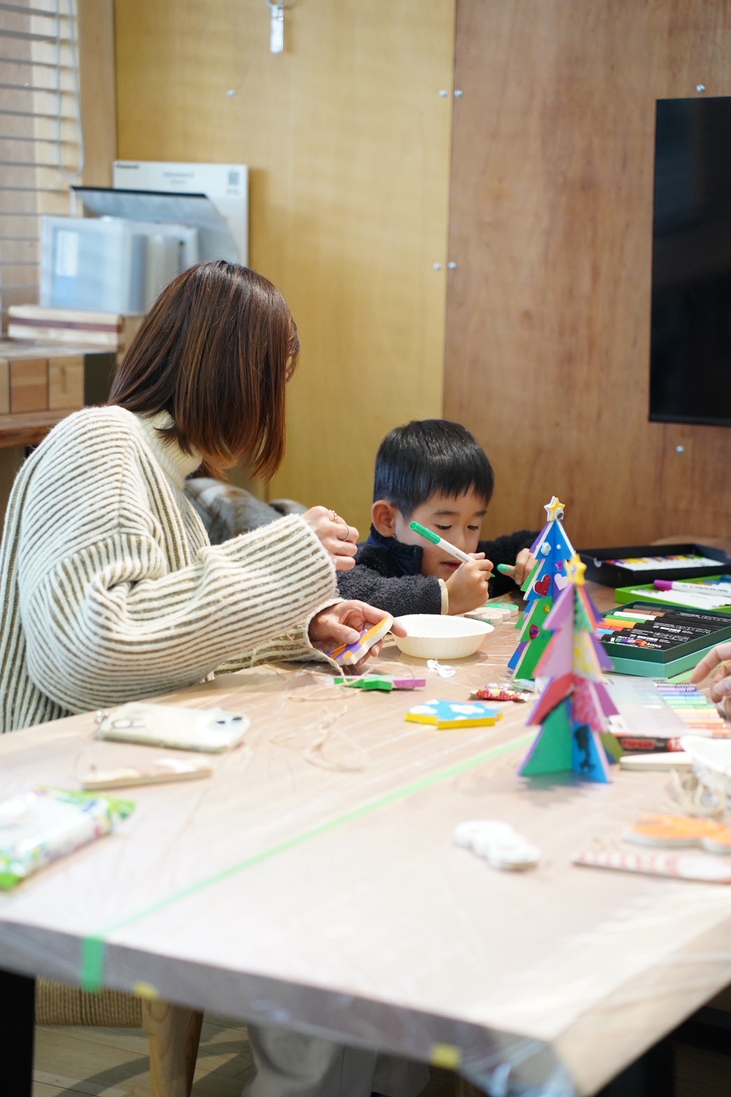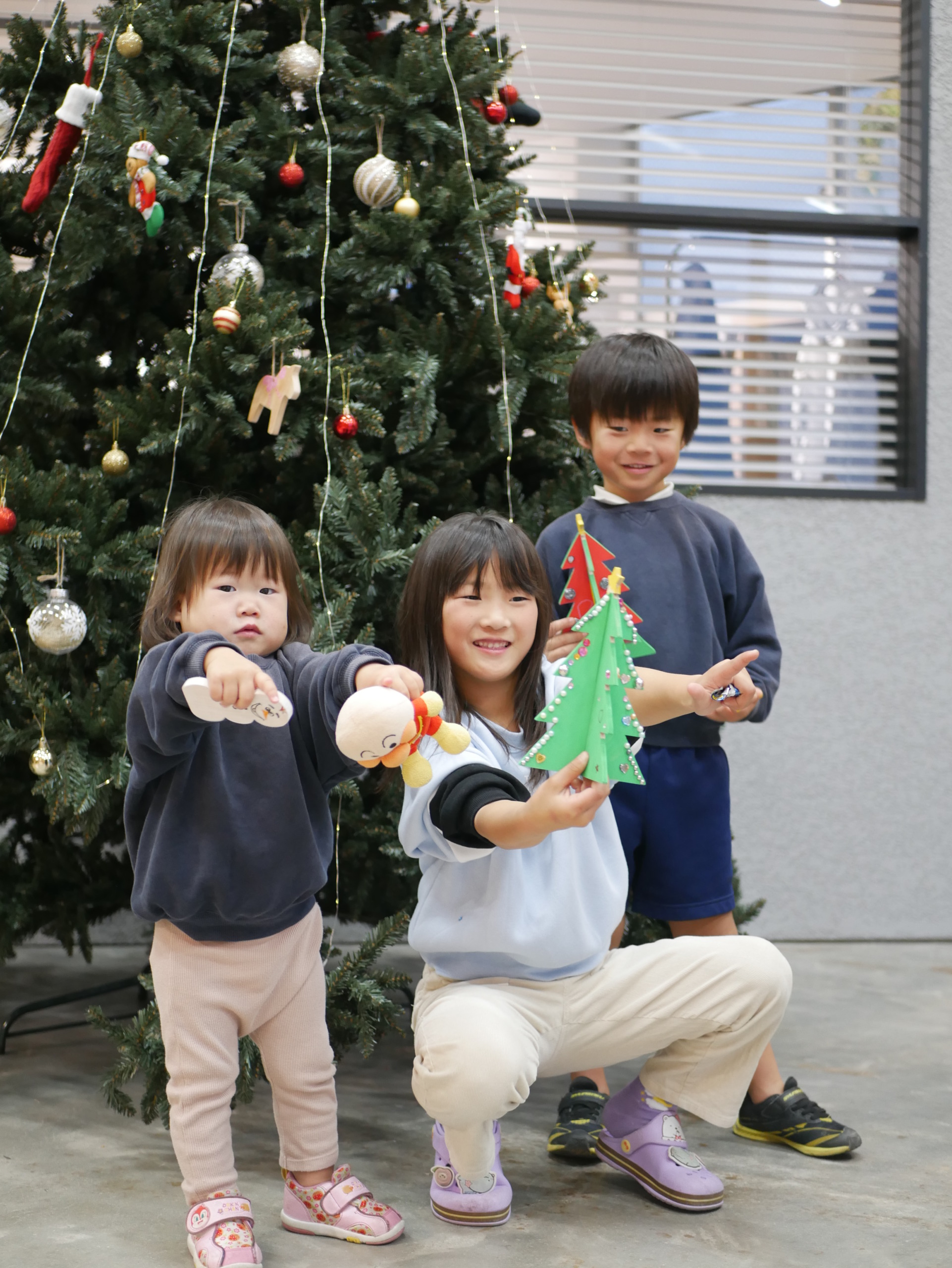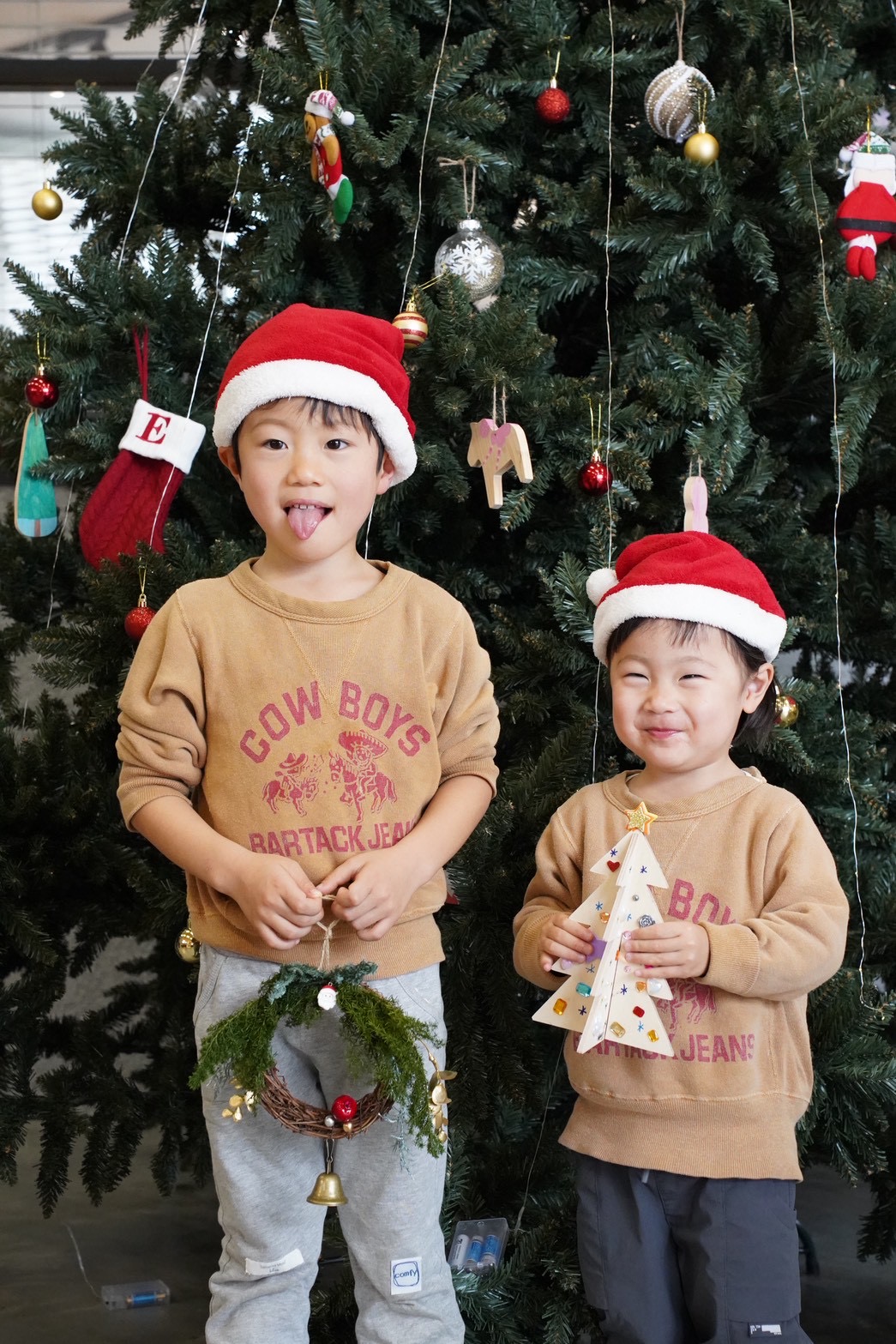 オーナメント作りでは、お子様たちが自由に色を塗ったり、シールで顔を作ったりと、個性あふれる作品が次々に完成♩