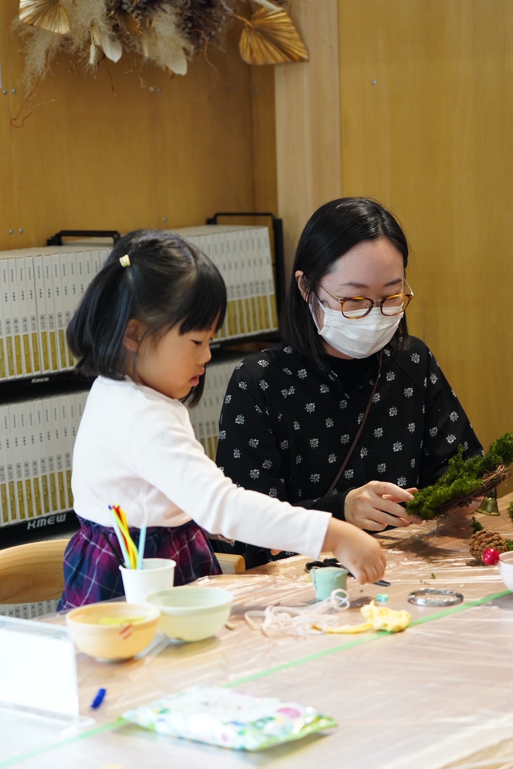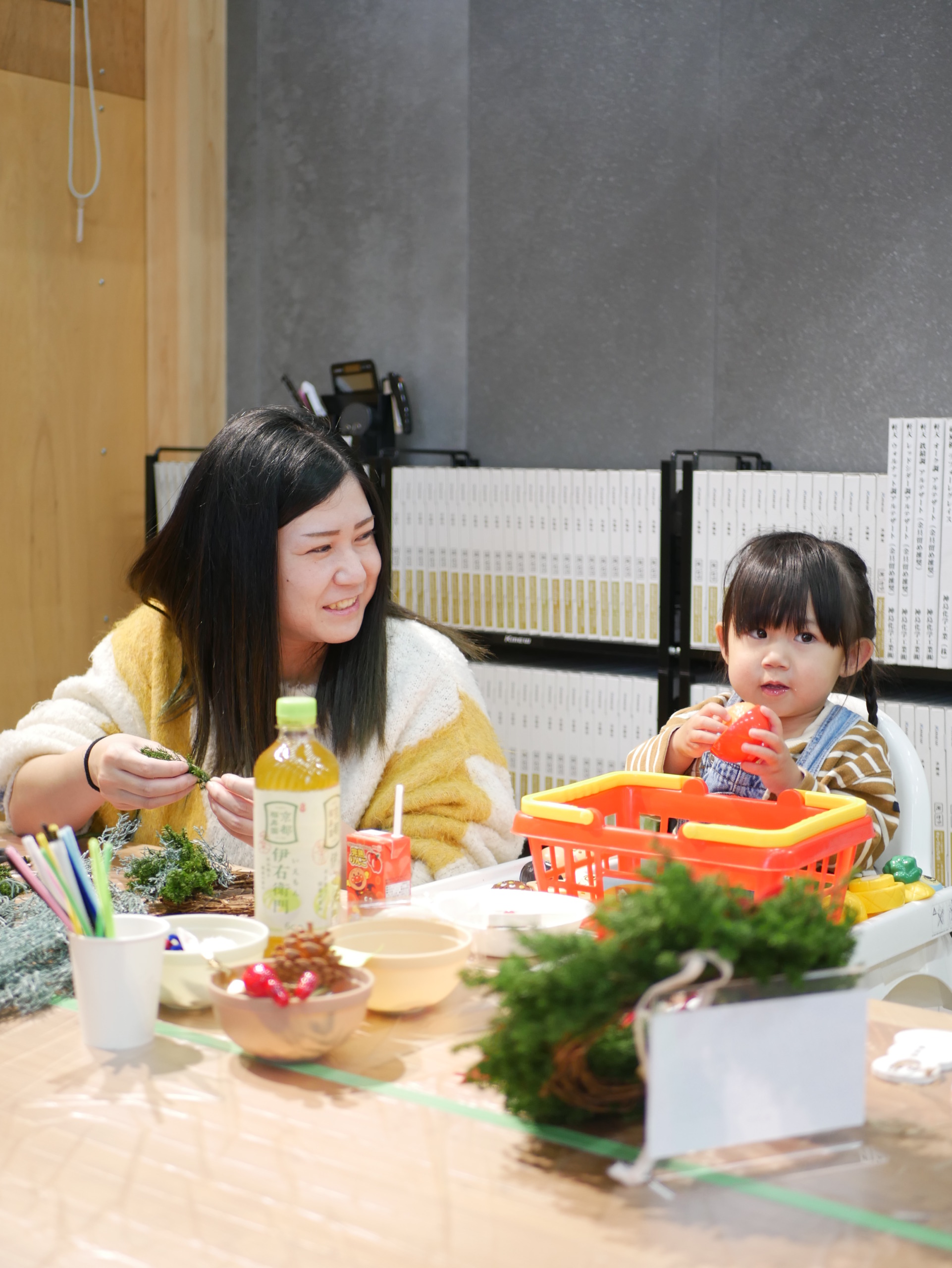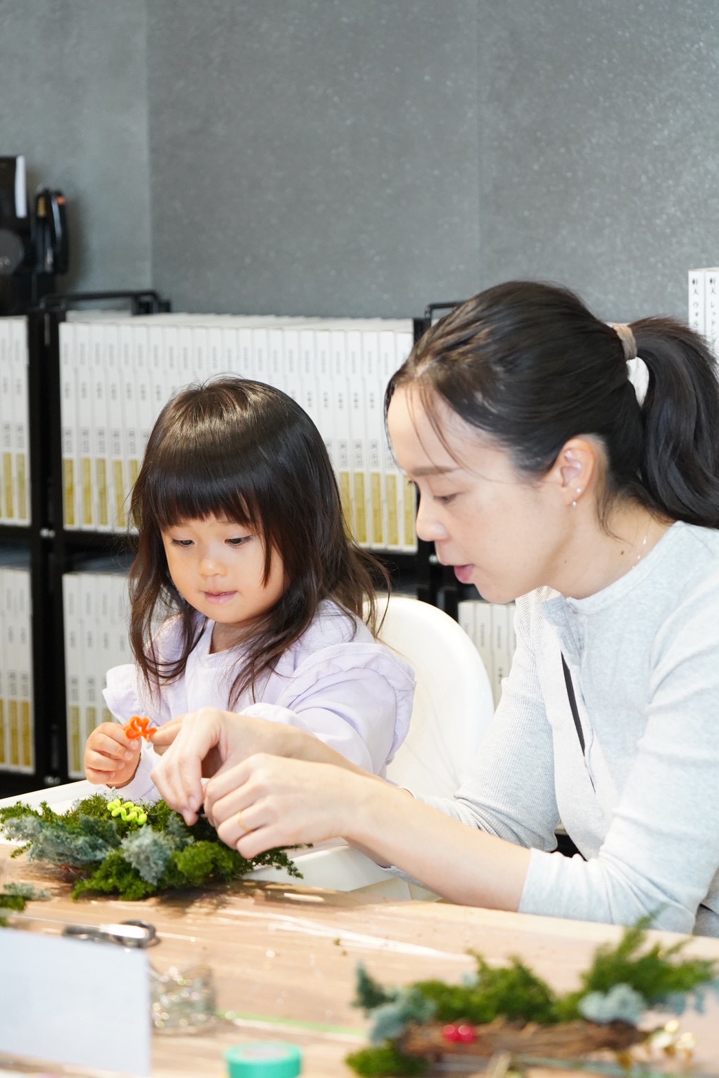 リース作りでは、夢中になる親御さんの姿も印象的で、「どの色にする?」「これもかわいいね!」とお子様と相談しながら一緒に作る姿があちこちで見られました( ◠‿◠ )