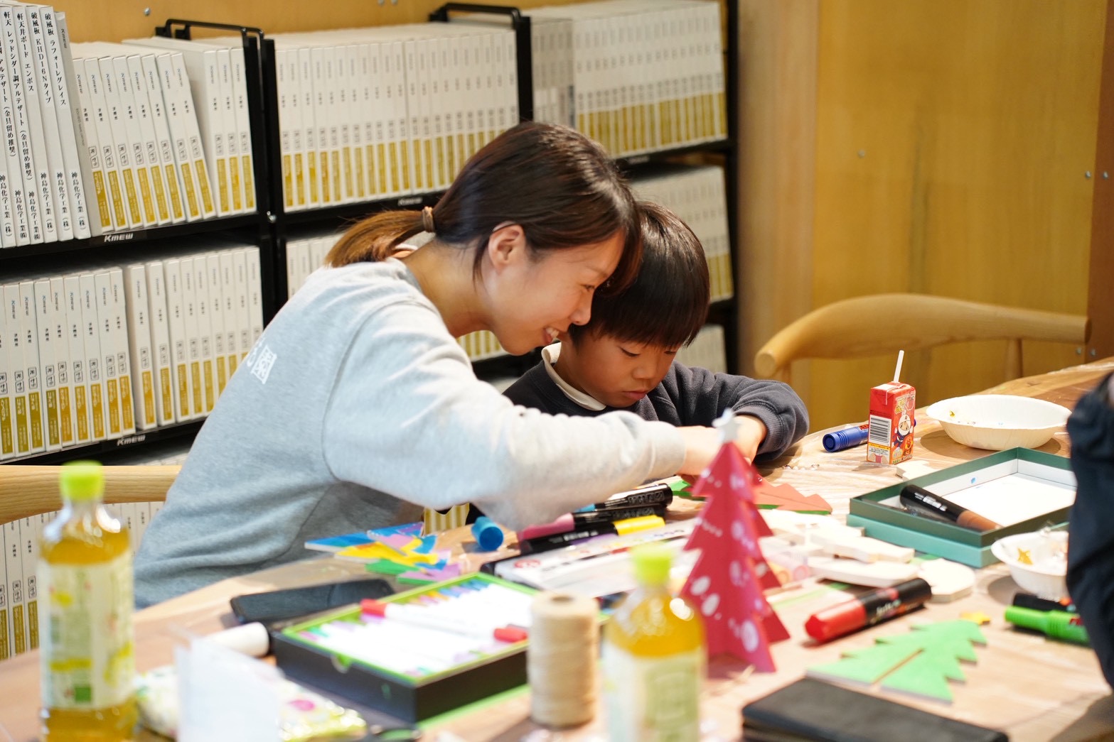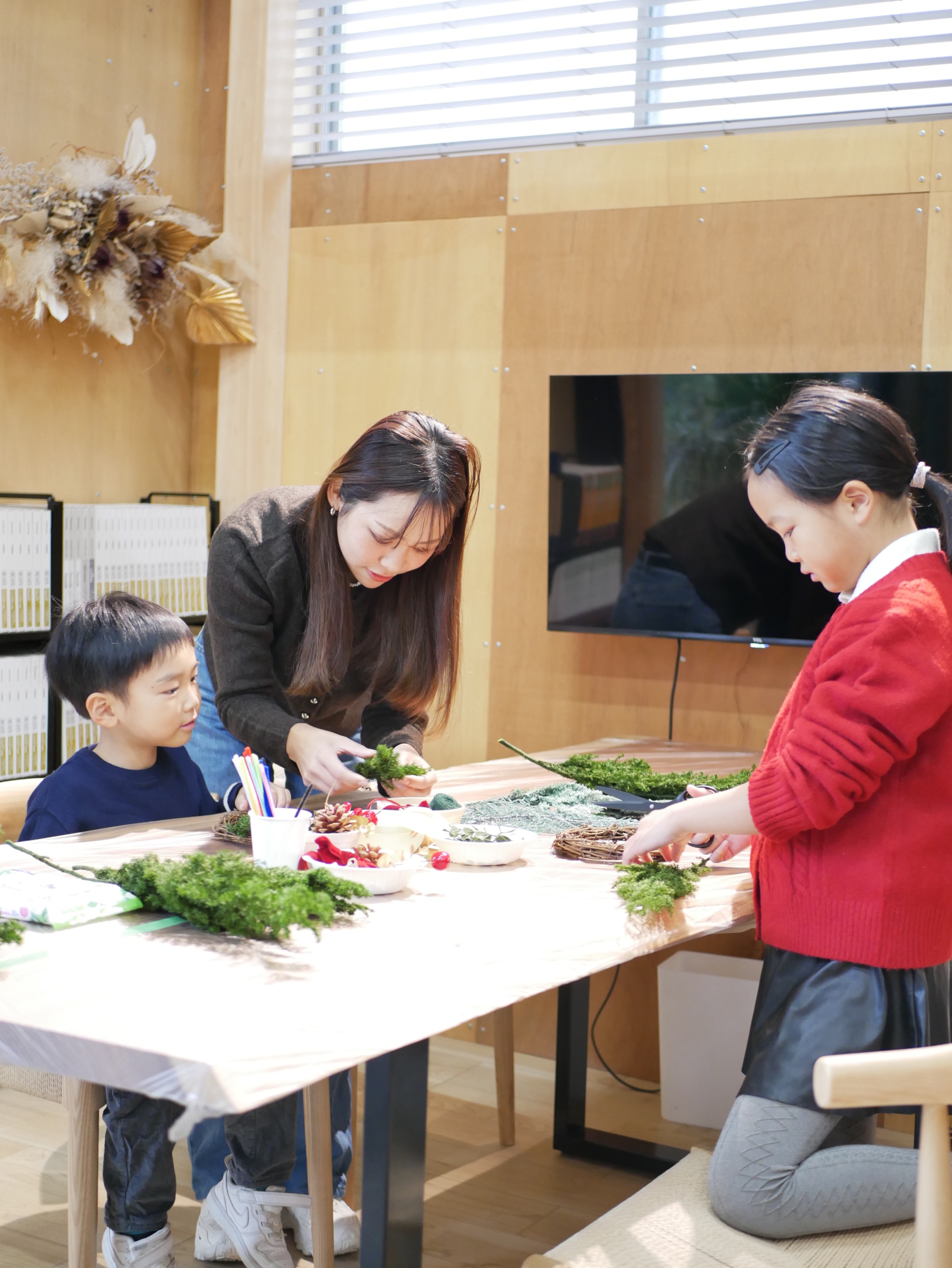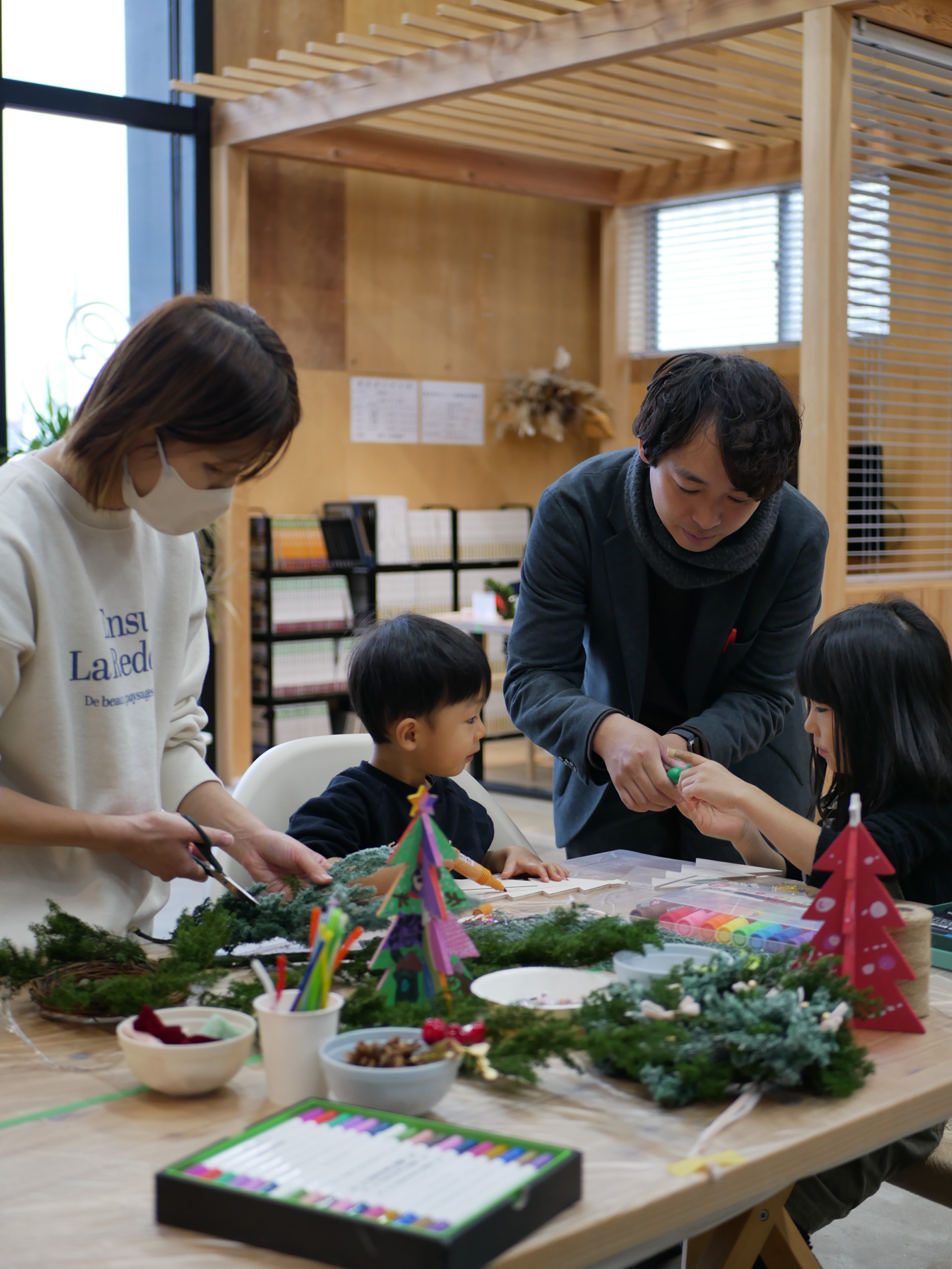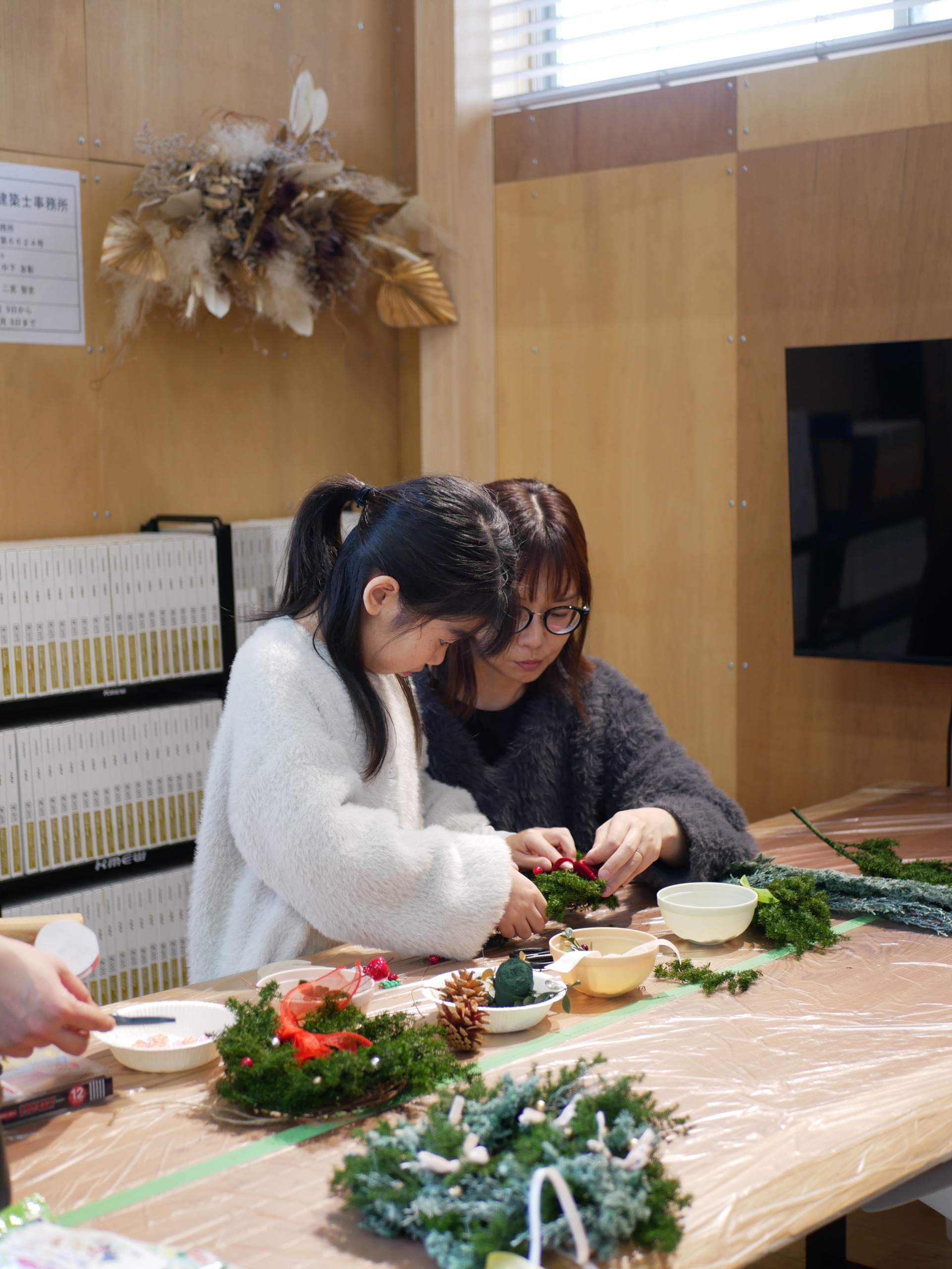 リース作りでは、夢中になる親御さんの姿も印象的で、「どの色にする?」「これもかわいいね!」とお子様と相談しながら一緒に作る姿があちこちで見られました( ◠‿◠ )