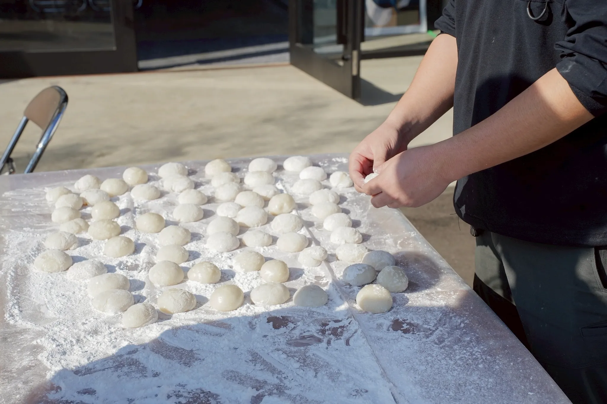 つきたてのお餅は、その場で丸めて、みんなで一緒にいただきました!