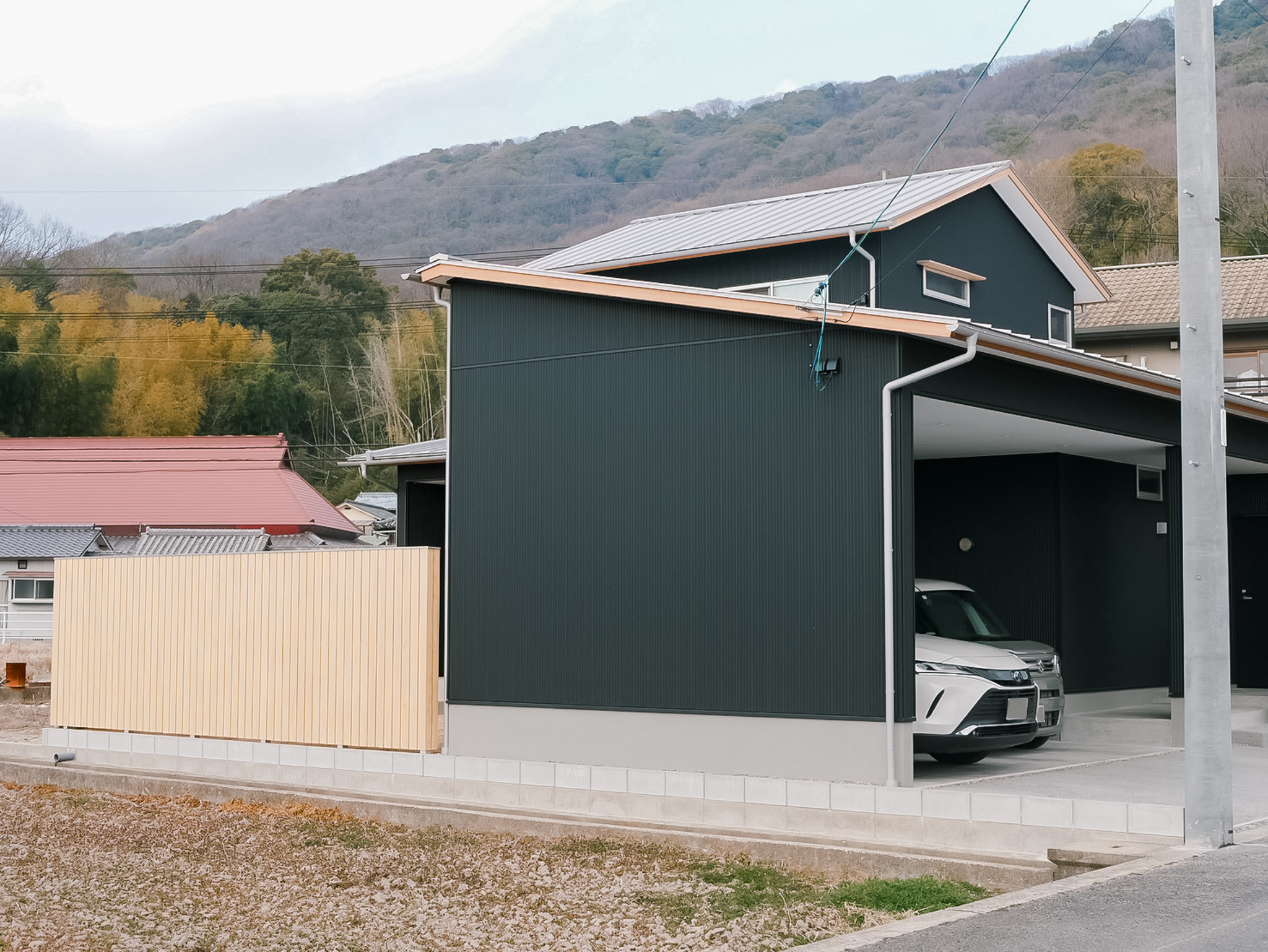 既製品のカーポートを付けるより見た目もきれいだし、雨にも濡れず、そのまま家に入れるのがいいです。