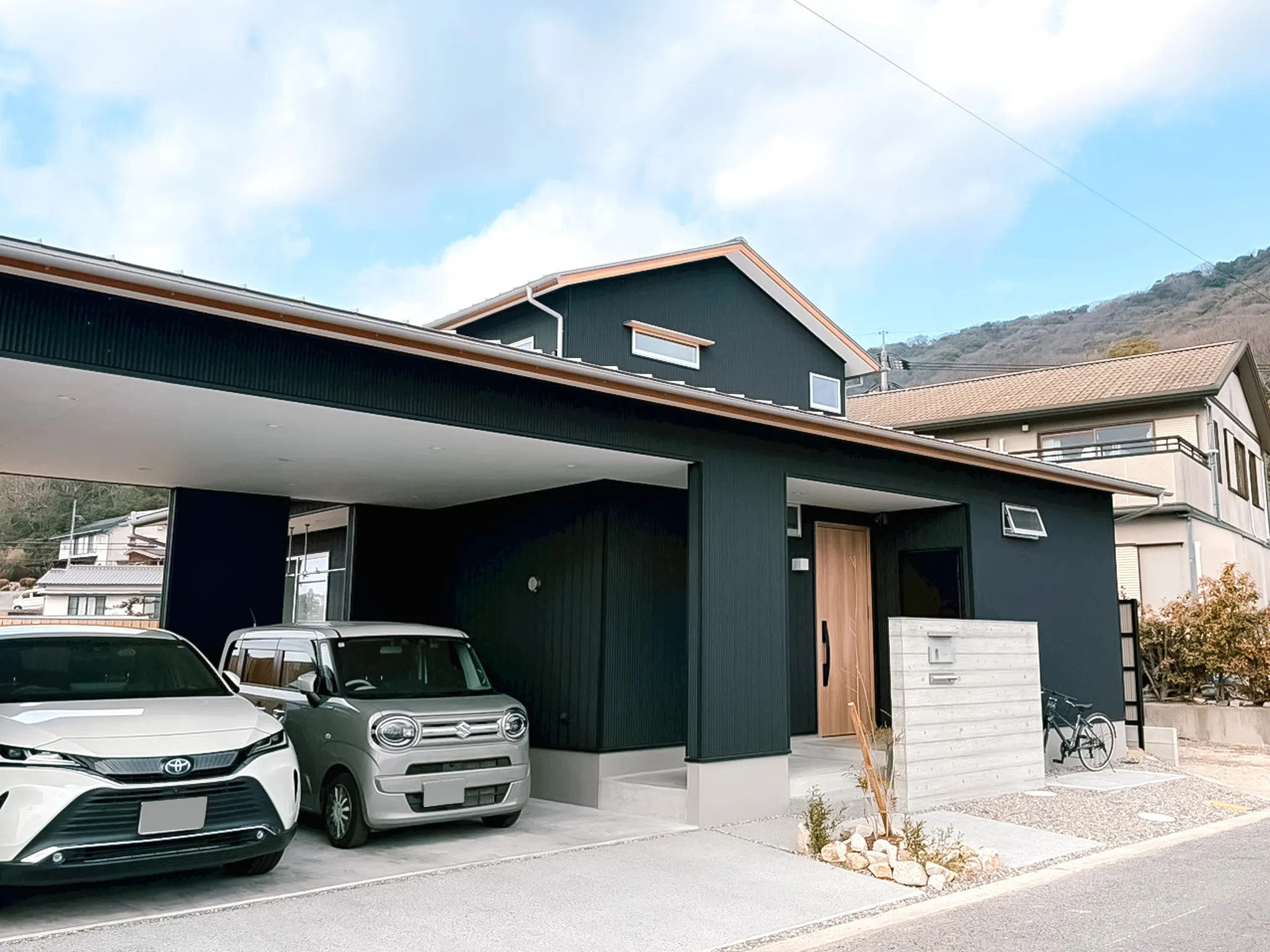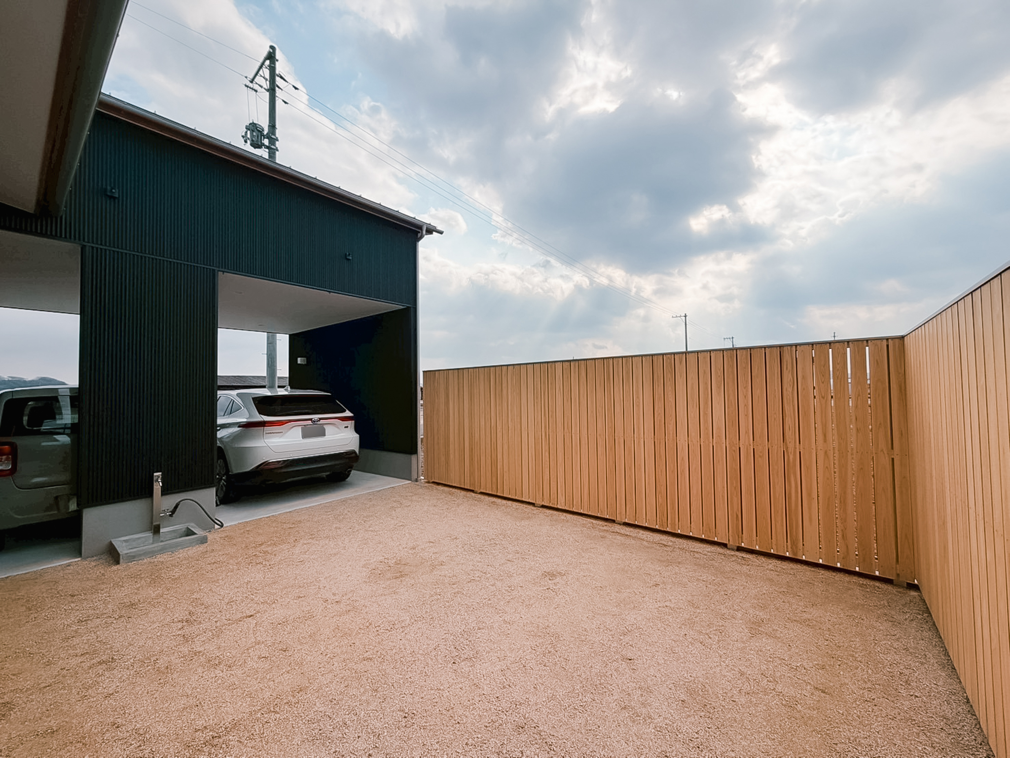 既製品のカーポートを付けるより見た目もきれいだし、雨にも濡れず、そのまま家に入れるのがいいです。