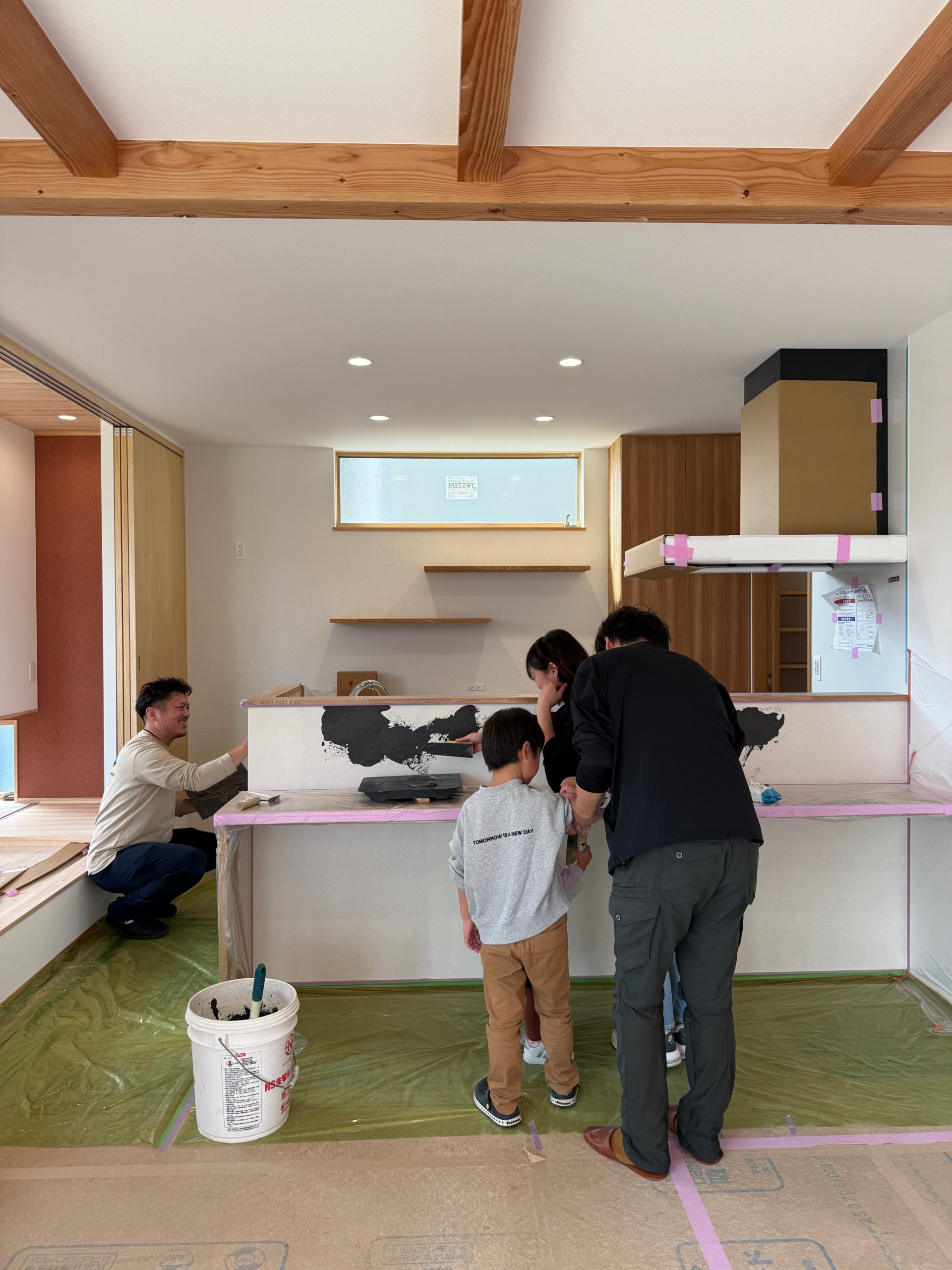 仕上げの一部をお施主様ご家族にもご参加いただくことで、家づくりの過程そのものがご家族にとって一生の思い出になるように𓂃