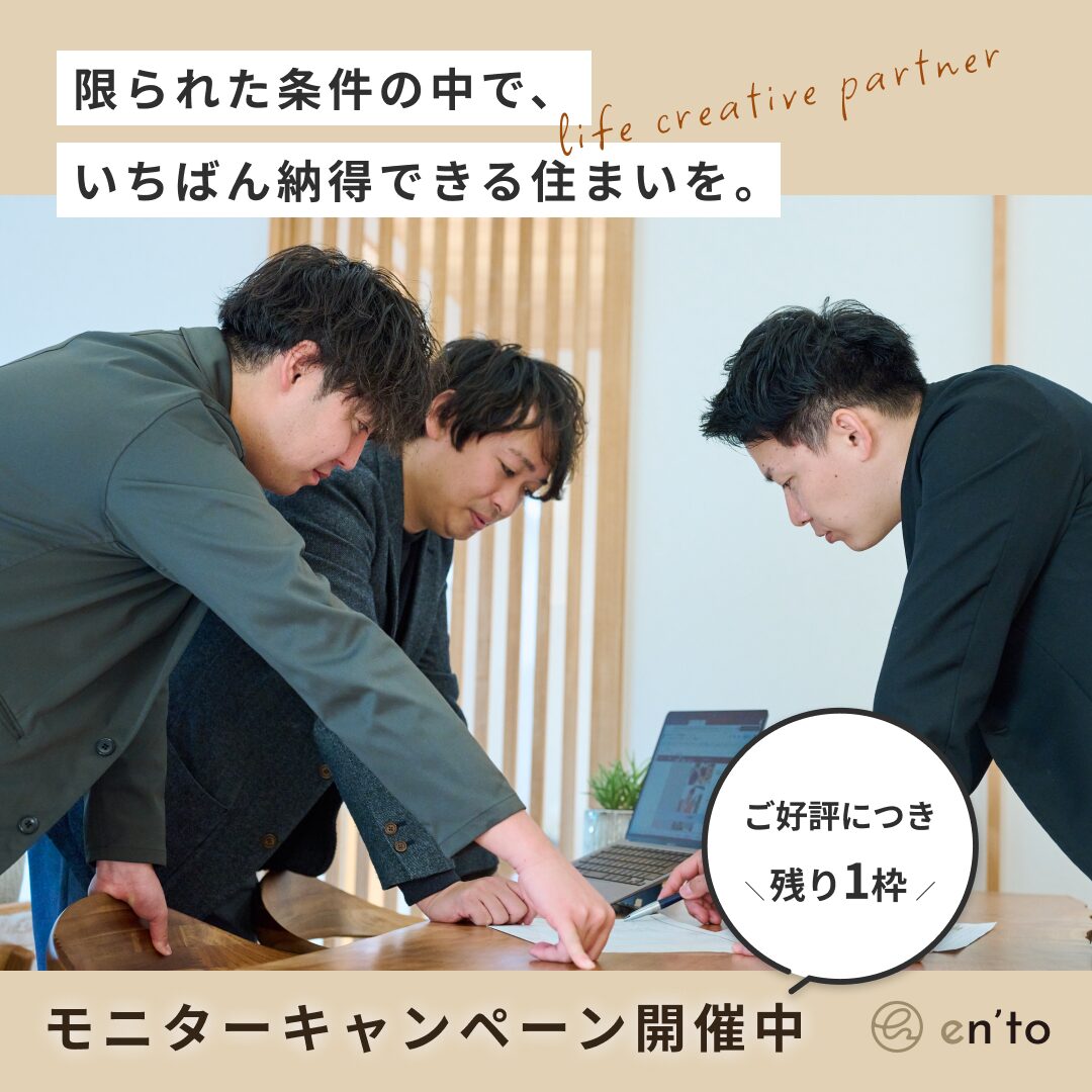 そうした、合理的な家づくりをもっと追求していくために「3組様限定のモニターキャンペーン」を開催しています。