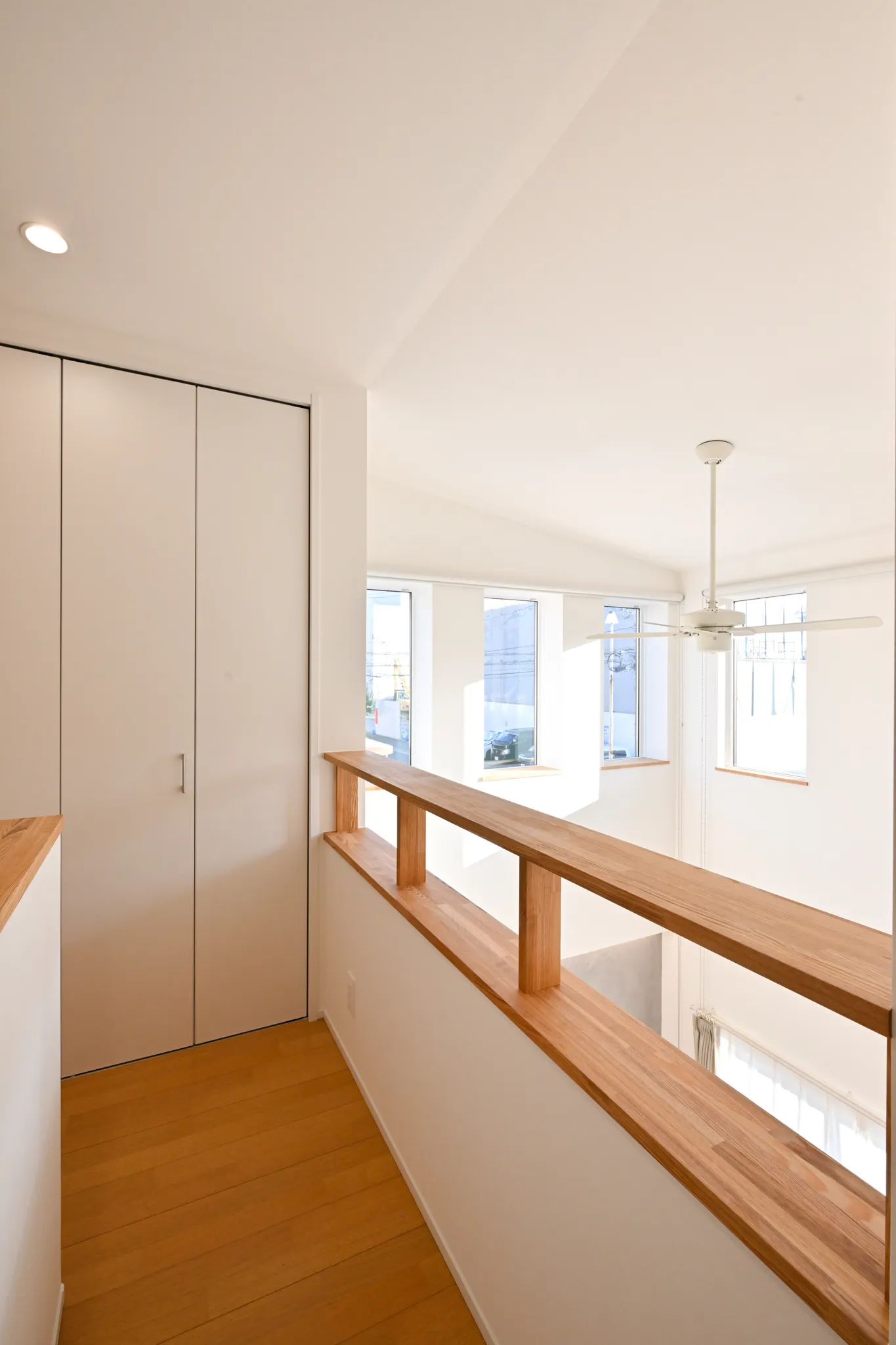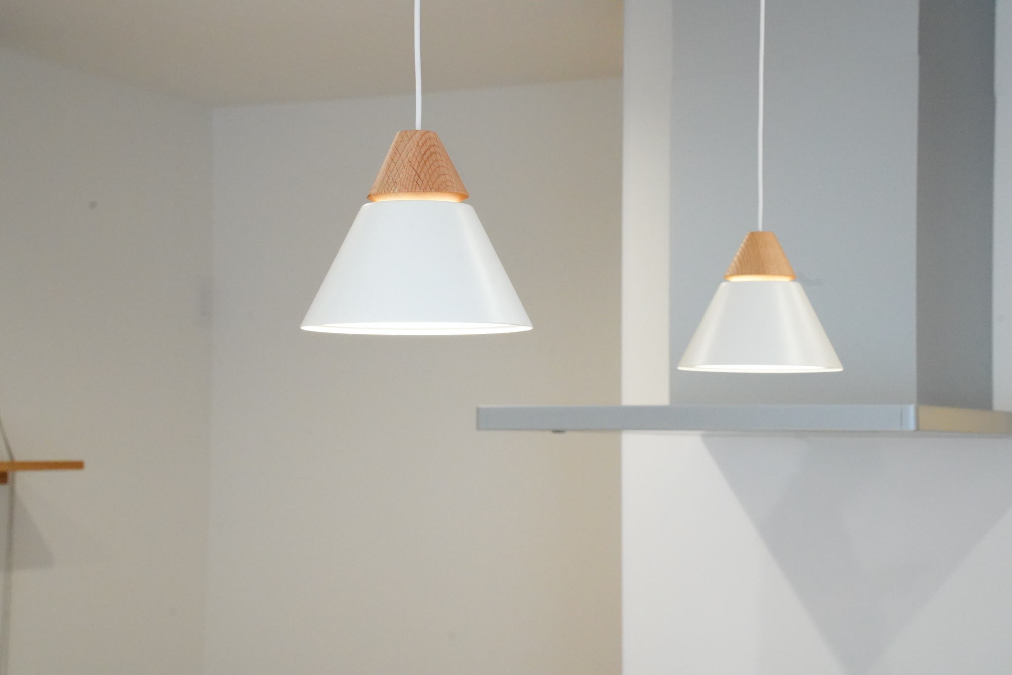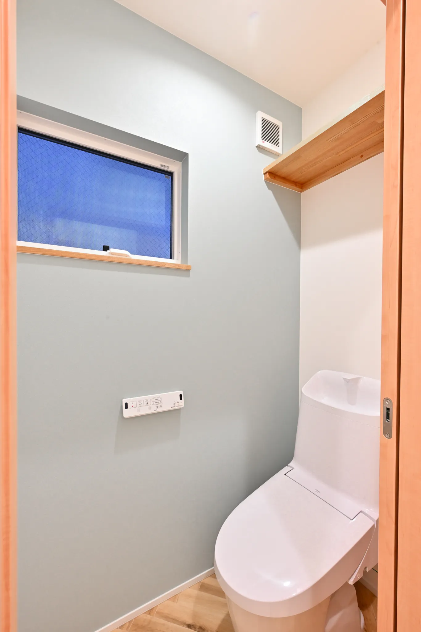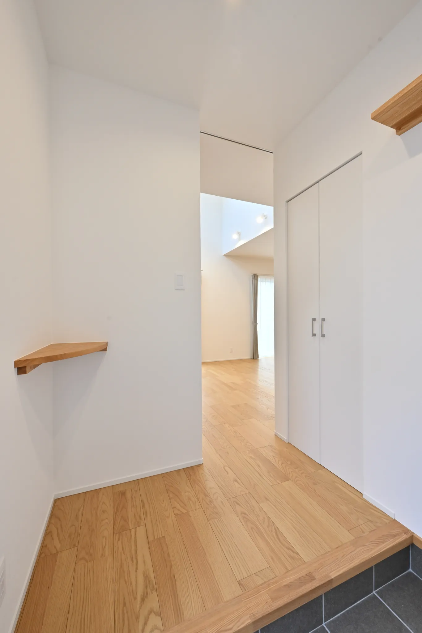 漆喰のアクセント壁や、木の質感を大切にした造作扉・枠材。