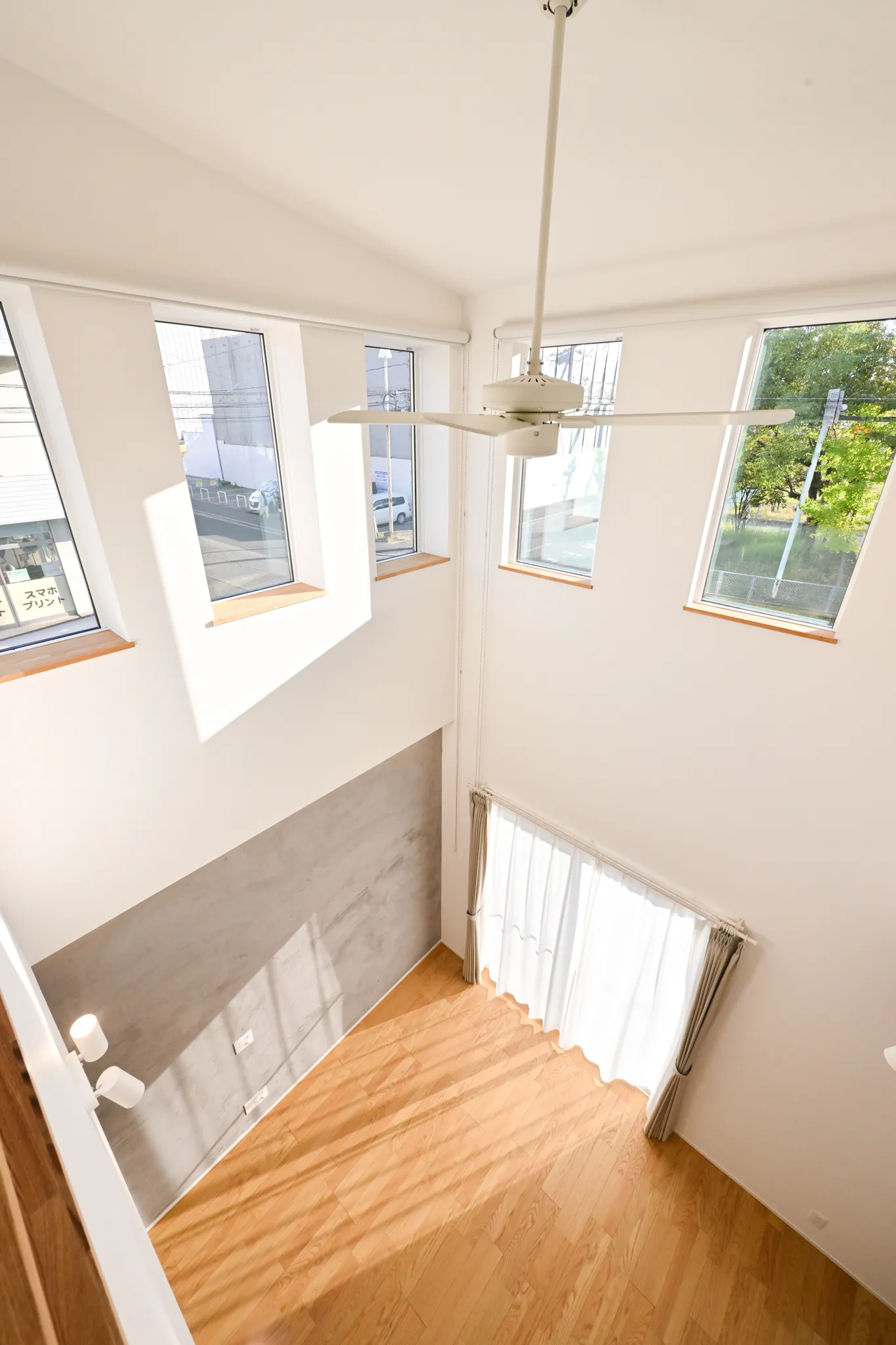 大きな吹き抜けから公園の景色を一望できるよう設計。