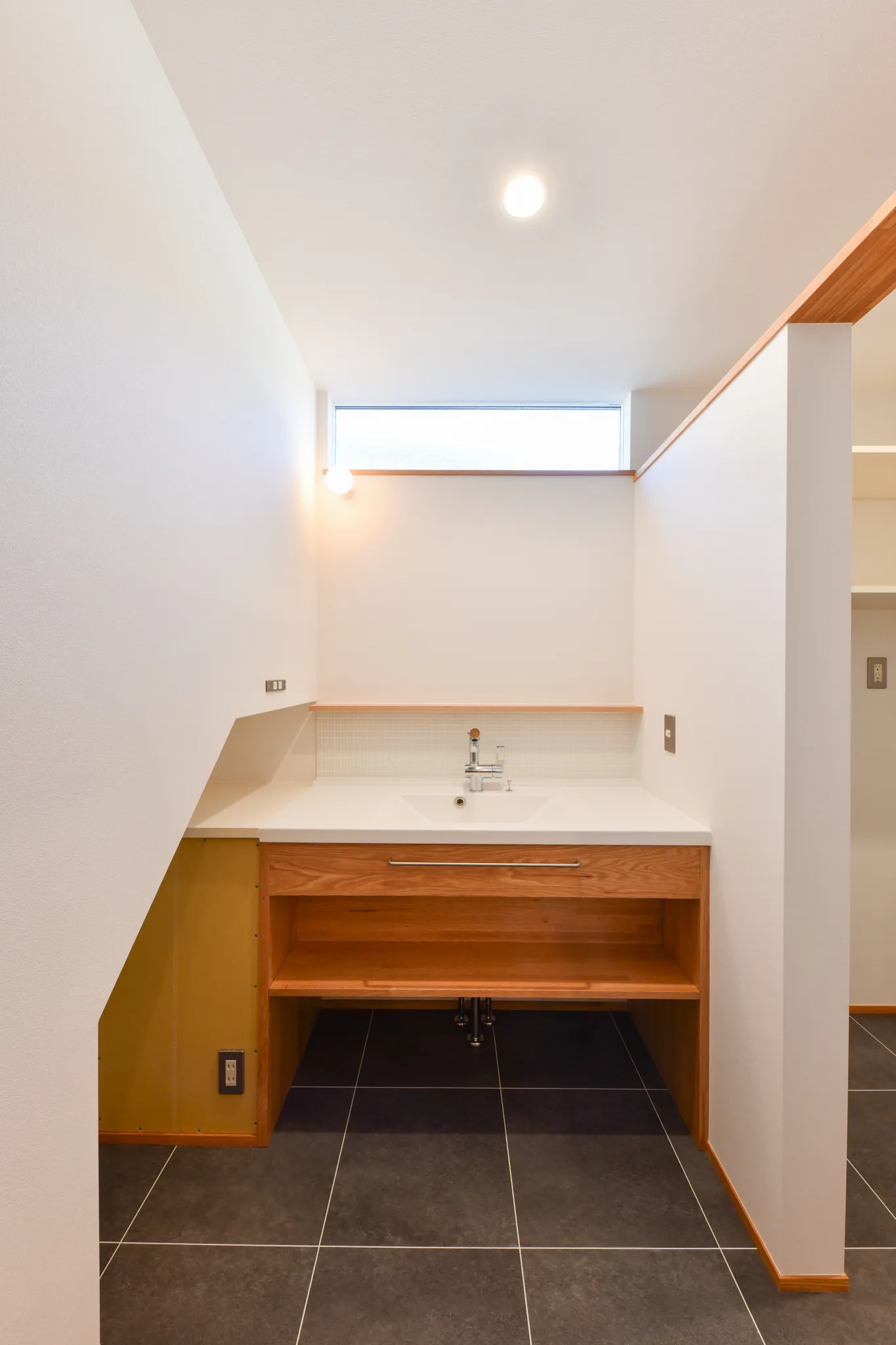 外壁には、留め金物が目立たないタニタハウジングの「ZIGシリーズ」を採用。樋も同じメーカーのガルバリウム製で統一し、端正な外観に仕上げています。